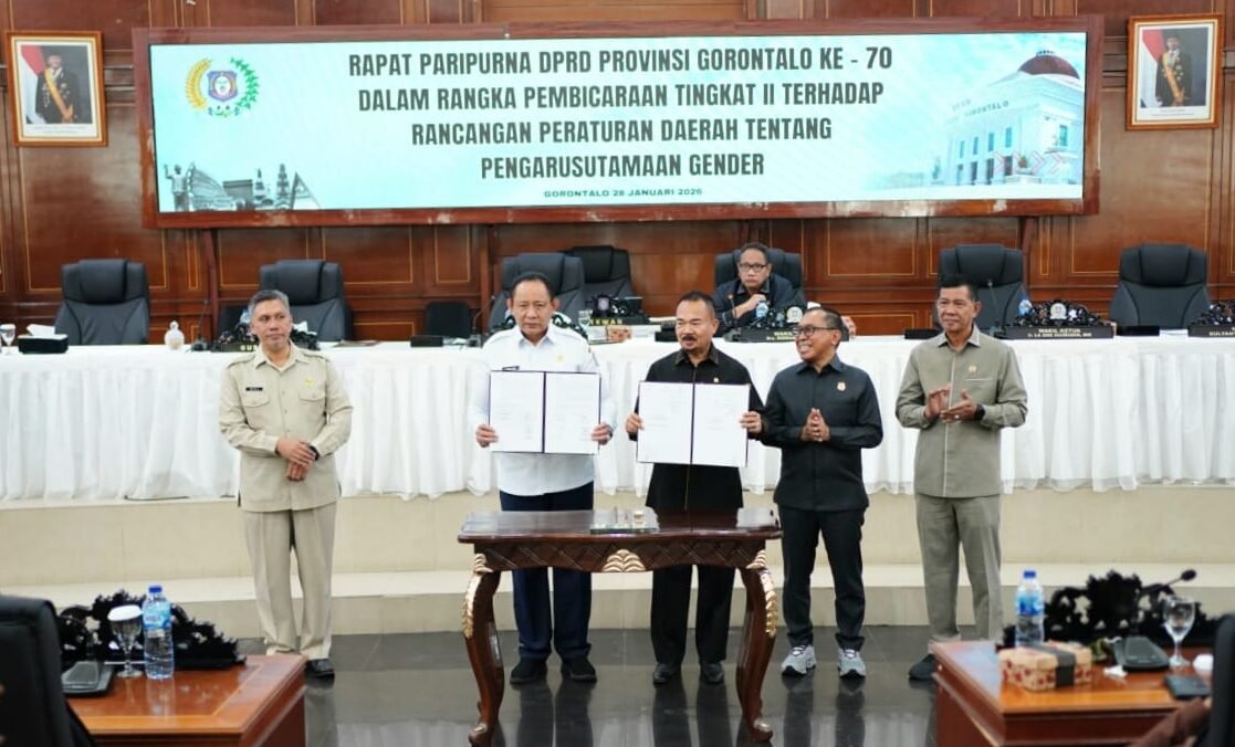 KABARREPUBLIK.ID, Kota Gorontalo – DPRD Provinsi Gorontalo bersama Pemerintah Provinsi Gorontalo menyepakati Rancangan Peraturan Daerah tentang Pengarusutamaan Gender. Kesepakatan tersebut memperkuat pedoman penyelenggaraan pemerintahan daerah.