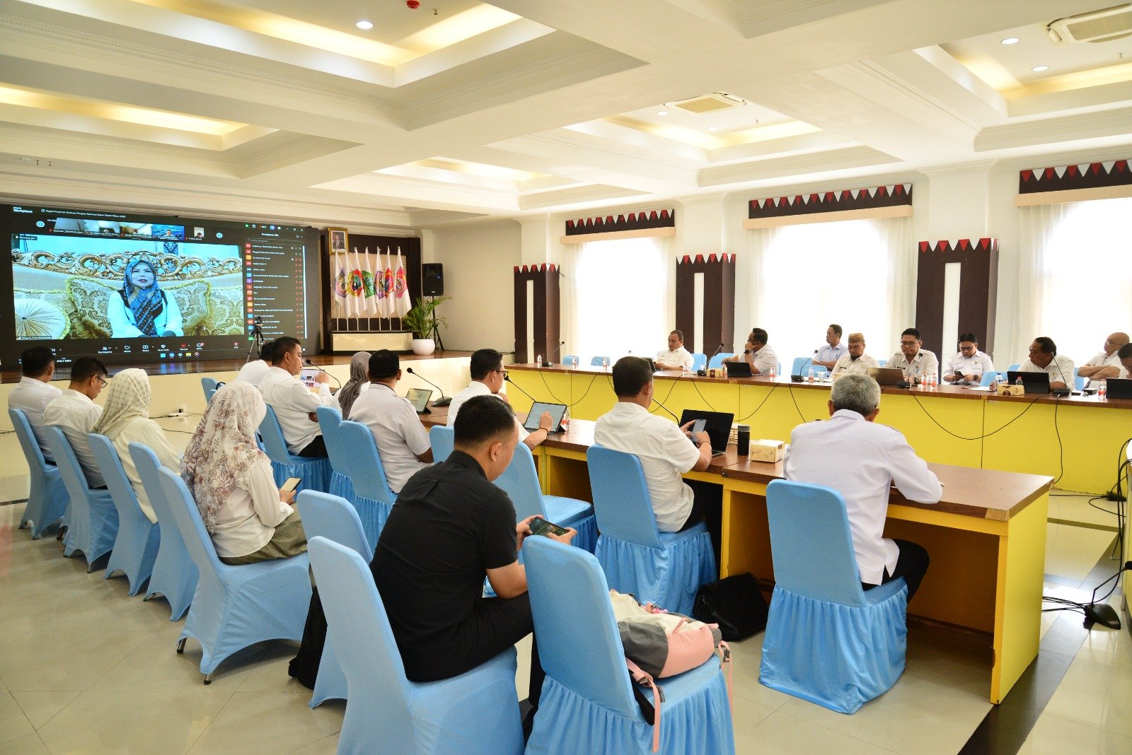 Gubernur Gorontalo Gusnar Ismail memimpin Rapat Pimpinan secara virtual melalui Zoom Meeting, Rabu (15/4/2025).