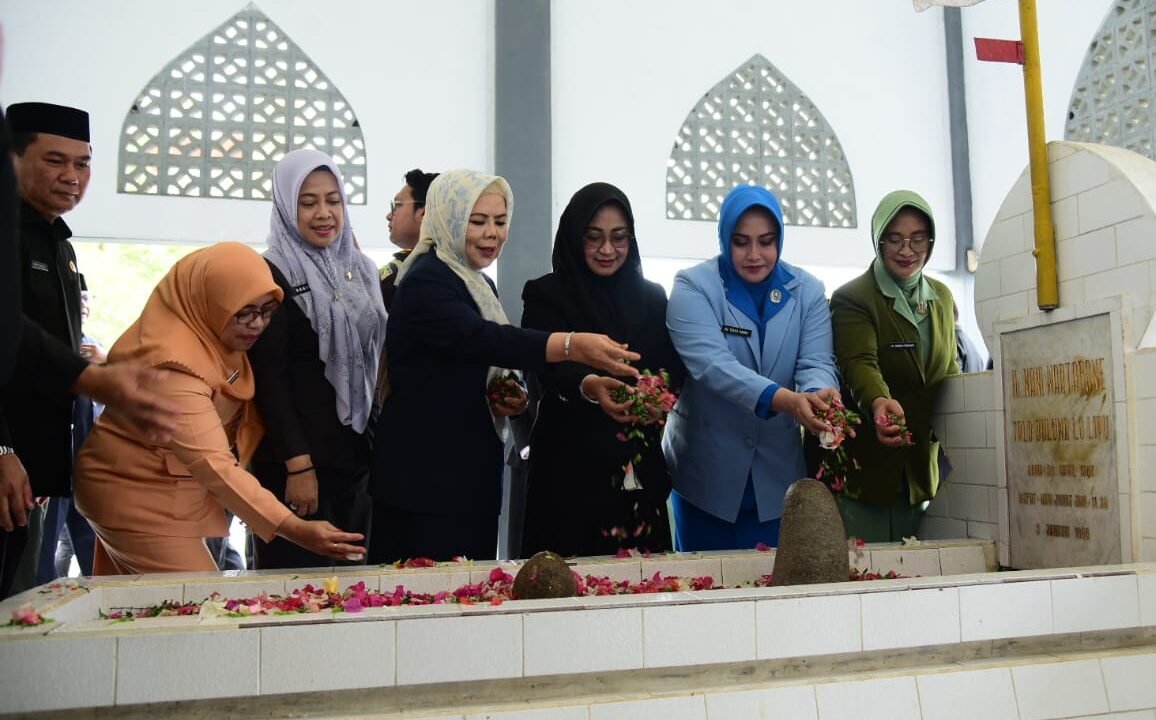 Idah memimpin prosesi tabur bunga di makam Nani Wartabone dan istrinya, Aisyah Wartabone Tangahu, sebagai bentuk penghormatan atas dedikasi mereka bagi bangsa dan daerah.