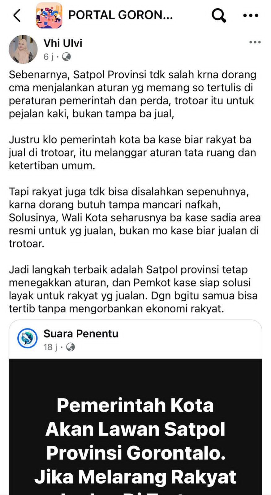 Salah satunya seperti status facebook dengan nama Vhi Ulvi, yang mengatakan Walikota melanggar tata ruang kota dan ketertiban umum karena trotoar hanya digunakan khusus untuk para pejalan kaki.