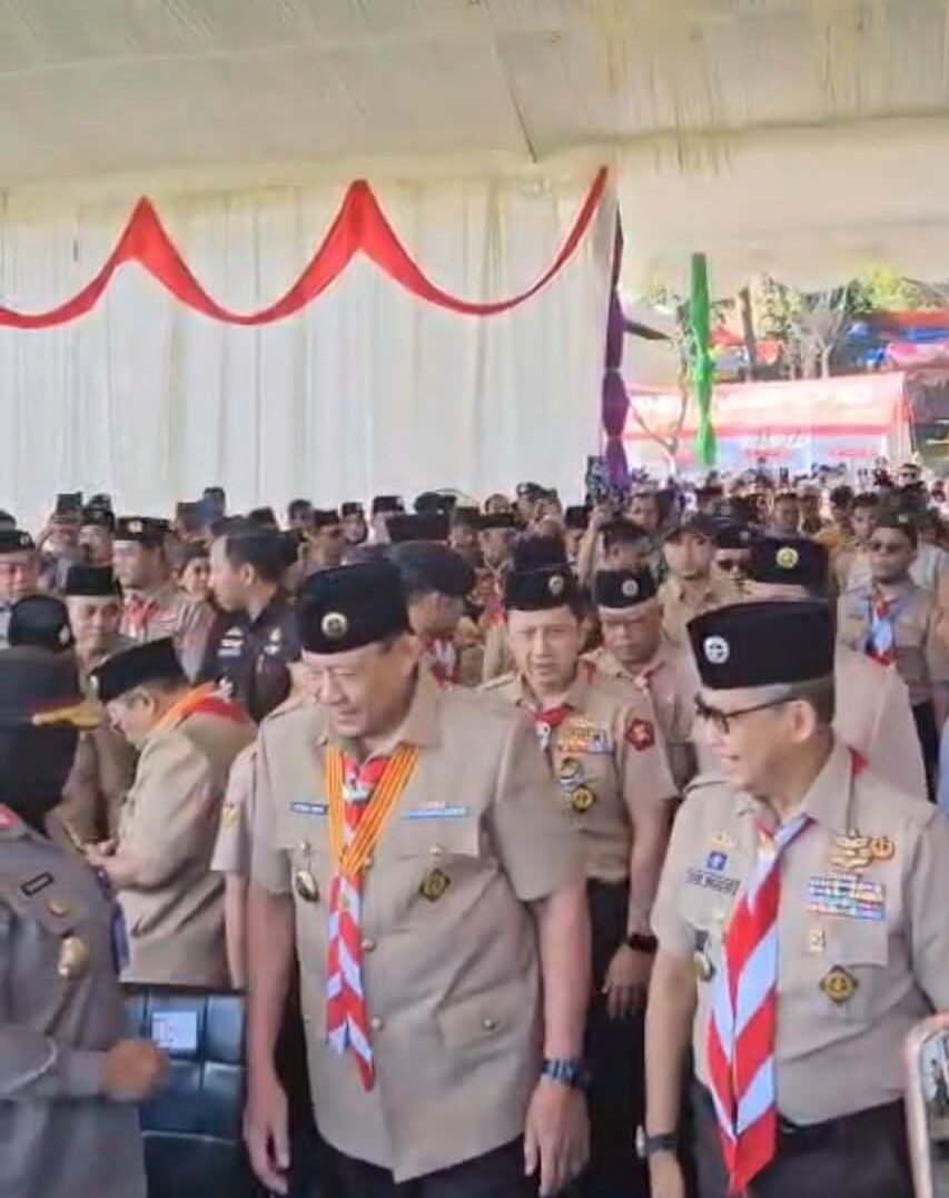 Momentum lucu ini tertangkap kamera saat Pembukaan Peran Saka Nasional Tahun 2025 di Bumi Perkemahan, Bongohulawa, Kabupaten Gorontalo, Senin (03/11/2025).