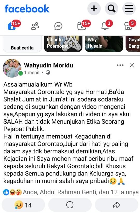 KABARREPUBLIK.ID — Sebuah video singkat anggota DPRD Provinsi Gorontalo dari Fraksi PDI-Perjuangan, Wahyudin Moridu menjadi sorotan setelah pernyataannya mengenai “merampok uang negara” beredar luas di media sosial.