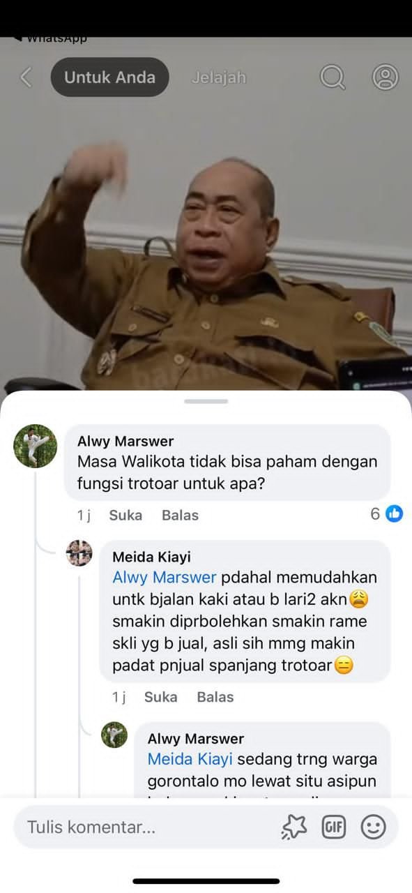 Parahnya, ada netizen yang menyebut Walikota Adhan Dambea tidak paham fungsi dari trotoar.
